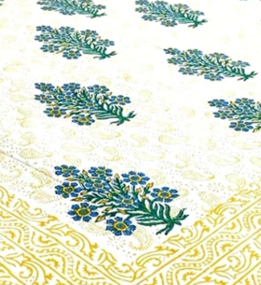 King Size Block Print Bed Linen with 2 pillow covers - yellow and blue