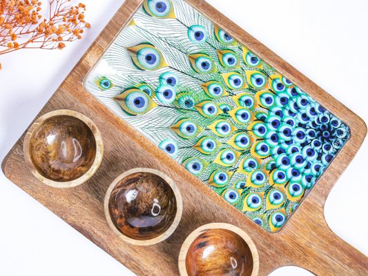 Chip And Dip Platter Set - Peacock Feather