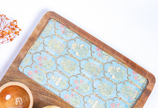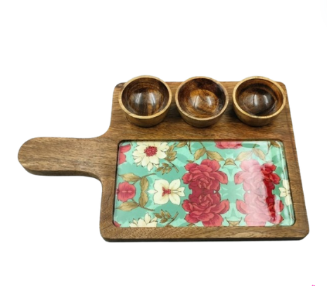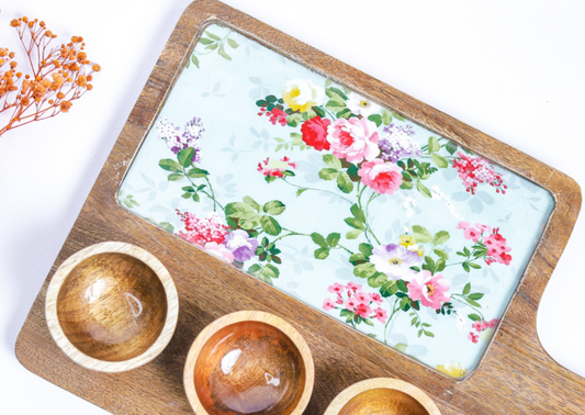 Chip And Dip Platter Set - Green and Pink floral platter