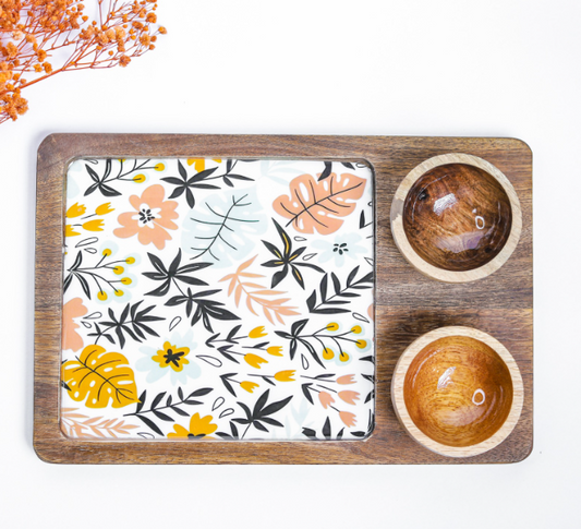 Chip And Dip Platter Set - Fresh Lemon floral Print