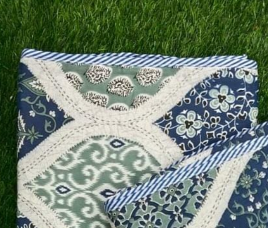 Indian Block Print King Size Reversible Hand Quilted Comforter in Royal blue