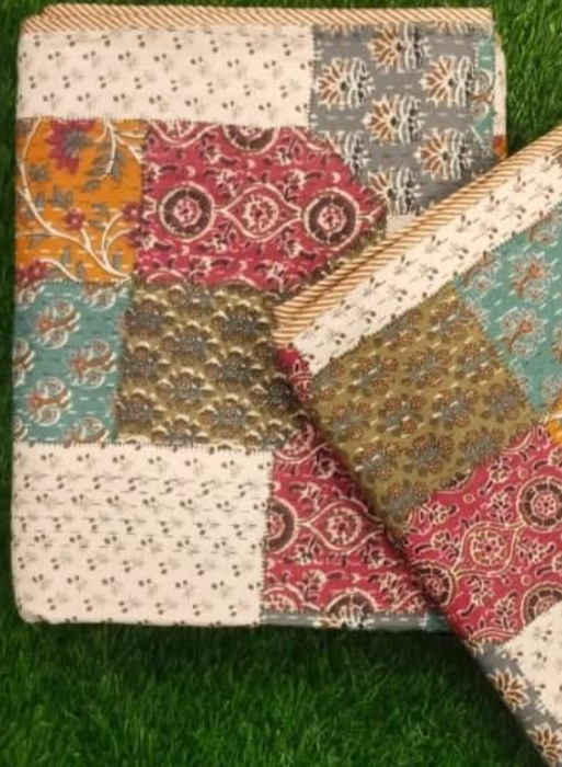 Cotton Dohar Handmade AC Blanket/Comforter - Indian Quilt Blanket Throw in brown lined border