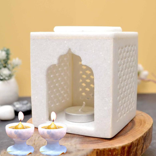 Marble Jaali T-light holder Marble tealight diffuser with marble diya