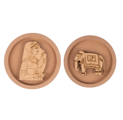Set of 2 - MDF Cutouts wall plate - Women and Elephant