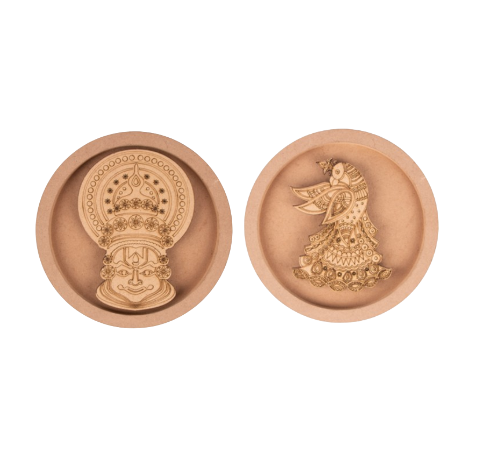 Set of 2 MDF Cutouts wall plate - Kuchipudi face and peacock frame