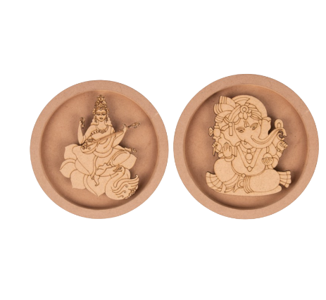 Set of 2 - MDF Cutouts wall plate -Lord Ganesh and Goddess Sarawathi
