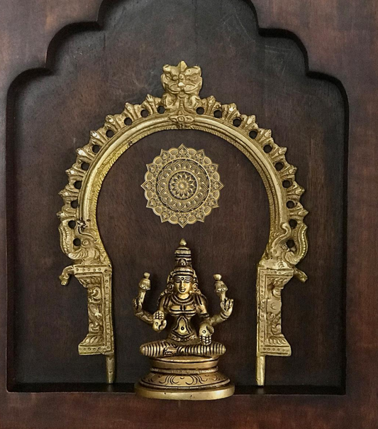Wooden frame Brass wall decor Prabhavali - Goddess Lakshmi