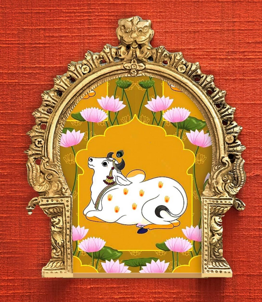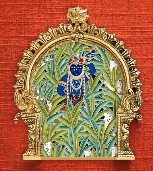 Wooden frame Brass wall decor Prabhavali - Lord Krishna
