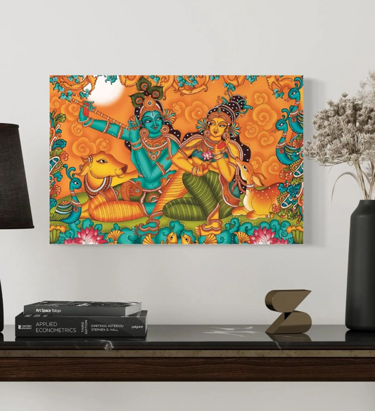 Kerala Mural Canvas wall art of Shri Radha Krishna