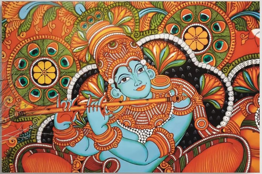 Kerala Mural Canvas wall art Shri Krishna playing flute